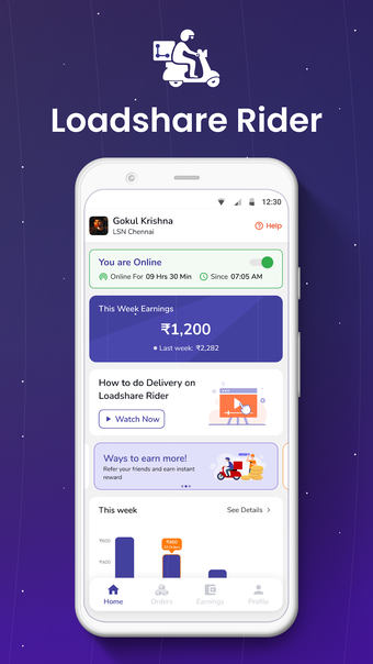 Loadshare Rider Deliver Earn เป็นแอปพลิเคชัน Android ที่ช่วยให้คุณเป็นผู้บริหารการส่งสินค้า / ผู้ส่งสินค้าและสามารถรับรายได้สูงสุดถึง 1200 บาทต่อวัน ด้วยแอปนี้คุณสามารถเลือกหมวดหมู่ที่คุณต้องการส่งสินค้าได้ เช่น อาหาร เครื่องใช้ในครัว อีคอมเมิร์ซ หรือยา นอกจากนี้คุณยังสามารถส่งสินค้าในเมืองใดก็ได้ในอินเดียมากกว่า 100 เมืองและสามารถรับรายได้สูงสุดถึง 2000 บาทโดยการแนะนำเพื่อนให้เป็นผู้ส่งสินค้า แอปนี้มีการถอนเงินทันทีด้วยการคลิกเพียงครั้งเดียว มีเวลาทำงานที่ยืดหยุ่น และมีอัตราค่าบริการที่ดีที่สุดในกลุ่ม